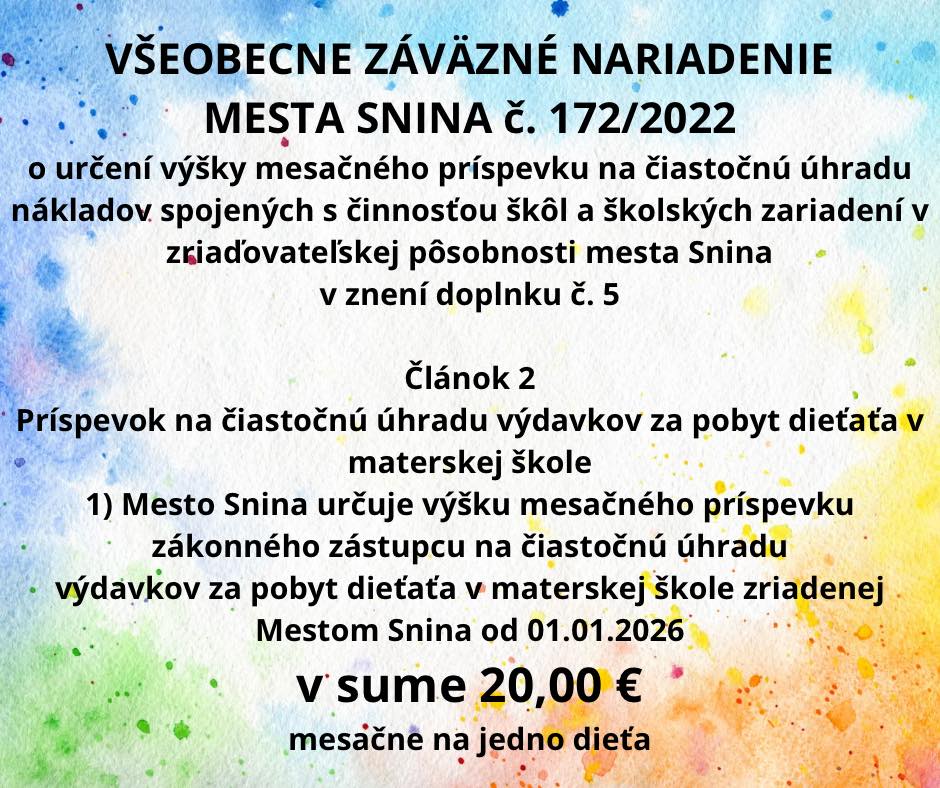V nasledujúcom odkaze Vám ponúkame celé znenie doplnku č.5 VZN č.172/2022.