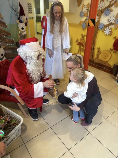 Mikuláš nezabudol prísť ani do nášho materského centra a priviedol si so sebou aj svojich pomocníkov – anjelika a elfa. Spoločne deti srdečne privítali a každé z nich sa potešilo aj malému mikulášskemu darčeku.
