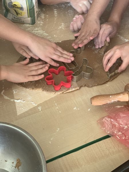 - najstaršie deti sa rozhodli spríjemniť si čakanie na blížiace sa Vianoce pečením voňavého vianočného pečiva.